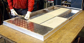 Den ordinarie tröskeln kan ersättas med en plattstång av massiv aluminium. En fördel när man behöver rulla tyngre vagnar eller kärror över tröskeln.